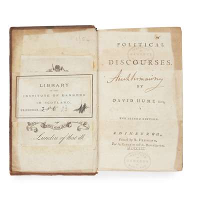 Edinburgh: R. Fleming for A. Kincaid and A. Donaldson, 1752. Second edition, 8vo, '[vi], 304; 'Auchtermairiny' on title, ink stamps to title and bookplate of The Institute of Bankers in Scotland on endpapers, the latter superimposed on the bookplate of Lundin of that Ilk, lacking front free endpaper, slight discolouration to margins of title, [ESTCT83618 'A contents leaf with vertical chain lines and an advertisement leaf have been inserted after the titlepage'], rubbed