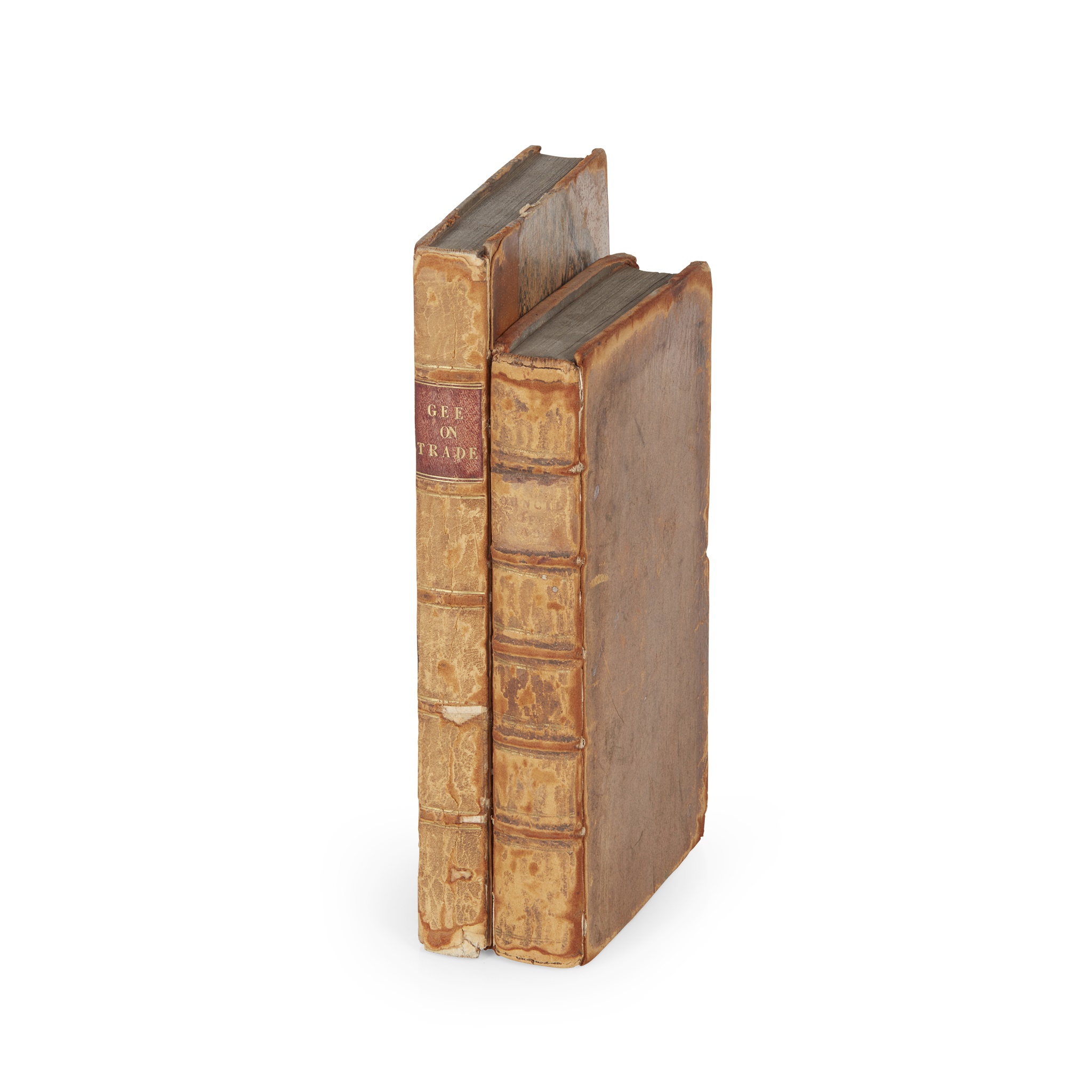 Gee, Joshua. The Trade and Navigation of Great -Britain Considered. Glasgow: Robert Urie, 1767. 12mo, [vii] iii-v, [vii]-xxi, [23]-267 [but seemingly complete], early 19th century half calf, stamp on title page and bookplate of the Institute of Bankers in Scotland, rubbed, [ESTC N13803] (2)