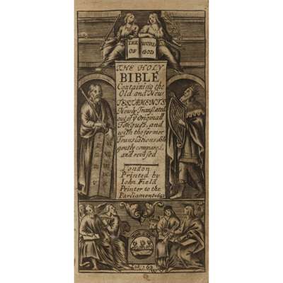 Note: One of two corrected states of John Field's error-strewn 1653 Bible, 'singled out by Kilburne for special condemnation' (Darlow & Moule). In this state three significant errors, in John 9:21, Romans 6:13 and I Corinthians 6:9, have all been corrected; there is another state (Darlow & Moule 636) in which only the error in Romans has been corrected.