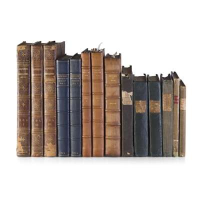 and 5 others: Letters from Roundhead Officers written from Scotland and Chiefly Addressed to Captain Adam Baynes, Edinburgh: Bannatyne Club, 1856 (first edition, 4to, original cloth, presentation inscription); William Hamper (editor), The Life, Diary, and Correspondence of Sir William Dugdale, 1827 (first edition, 4to, contemporary quarter cloth, spine torn at head); Charles James Fox, A History of the Early Part of the Reign of the James the Second, 1808 (first edition, 4to, contemporary quarter cloth); White Kennet, Parochial Antiquities attempted in the History of Ambrosden, Burcester, and Other Adjacent Parts in the Counties of Oxford and Bucks, 1818 (new edition, 2 volumes, 4to, contemporary half cloth, front inner hinges gone); Sir John Temple, The Irish Rebellion, 1812 (4to, contemporary cloth, front joint cracked, spine defective); the lot sold as seen (14)