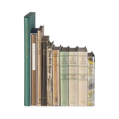 and 5 others: Robert Musil, The Man without Qualities, Secker & Warburg, 1955-54-6 (first edition in English, second impression of volume 1, first impressions of volumes 2-3, 3 volumes, 8vo, original cloth, dust jackets); Malachi Whitaker, Frost in April, Jonathan Cape, 1929 (first edition, 8vo, original cloth, dust jacket). H. S. Ede, Savage Messiah [on Henri Gaudier-Brzeska], William Heinemann Ltd, 1931 (first edition, 8vo, original cloth, dust jacket, inscribed by the author); Vivien Gribble (illustrator), Sixe idillia, London: Duckworth & Co, 1922 (one of 380 copies signed by the artist, 4to, original cloth, dust jacket, this copy inscribed to Naomi Mitchison by her husband Richard, 1922); Wood Lea Press, The Wood-Engravings of John Nash, 1987 (one of 750 copies, folio, original quarter cloth, slipcase); Fleece Press, Dear Mercia, Paul Nash Letters to Mercia Oakley, 1909-18, 1991 (one of 350 copies, 4to, original quarter cloth, slipcase) (10)