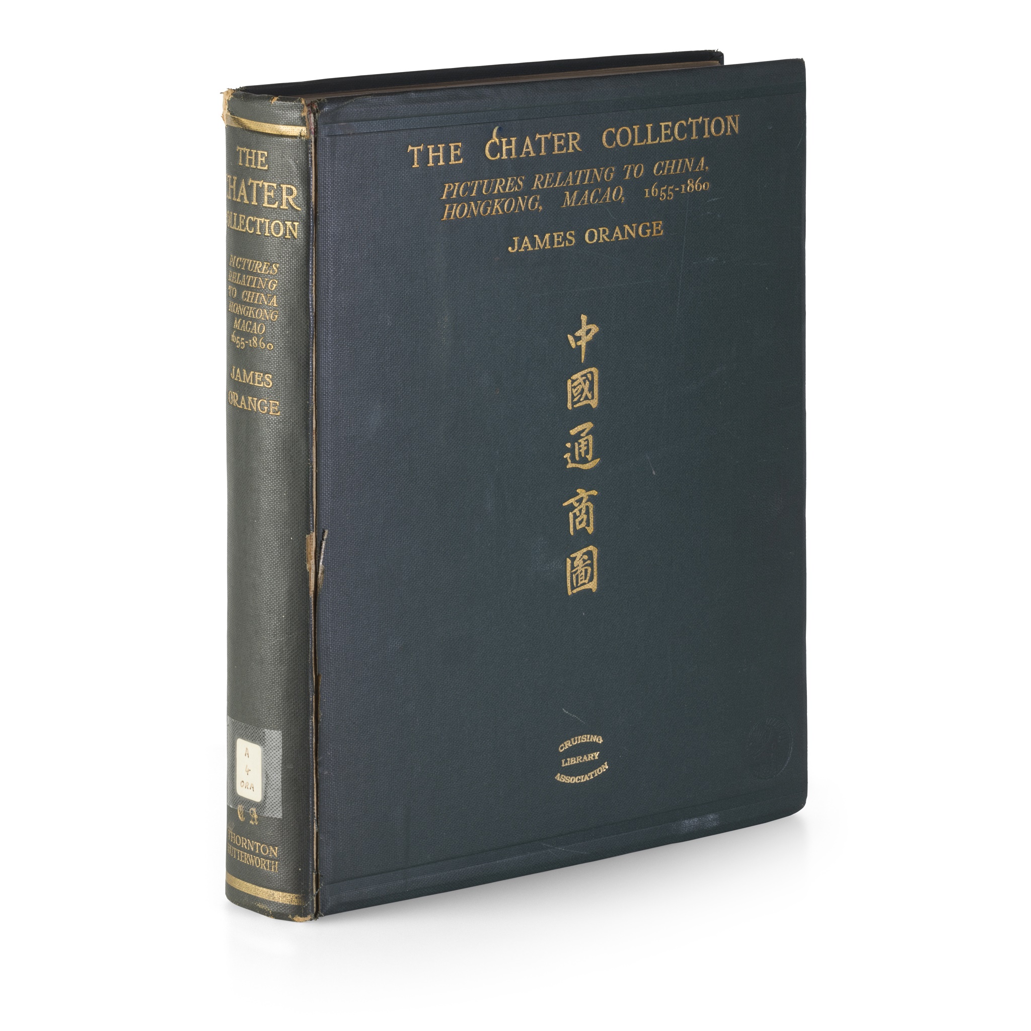 Pictures relating to China, Hong Kong, Macao, 1655-1860, with Historical and Descriptive Letterpress by James Orange. London: Thornton Butterworth, [1924], 4to, number 78 of 750 copies, frontispiece and plates, some coloured, 3 folding maps, original cloth, gilt, occasional light soiling, gilt library stamp to upper board, very small blindstamp at head of title, some wear to spine, upper hinge split, some soiling