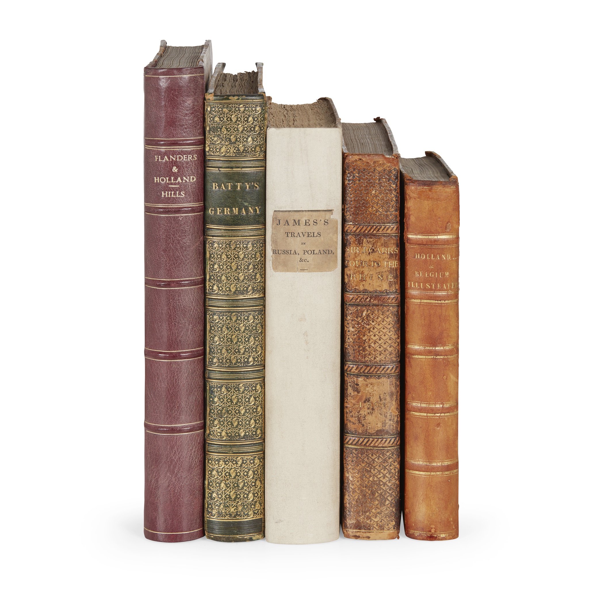 Kampen, N.G. van. The History and Topography of Holland and Belgium. London: G. Virtue, [1837], 8vo, engraved title, folding map and 61 plates after W.H. Bartlett, tissue guards, contemporary half calf, some spotting, upper joint slightly split at head of spine (5)