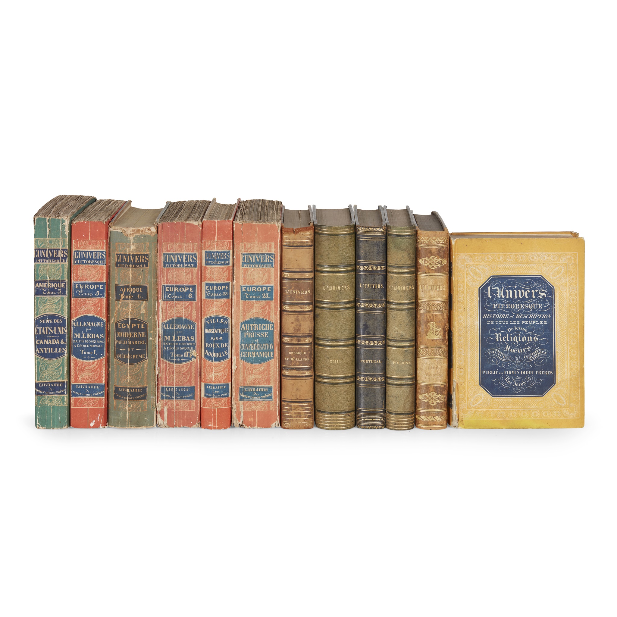 24 volumes, all Paris: Firmin Didot, publishers, c.1828-55, 8vo, including Grèce; États-Unis d'Amérique; Histoire des Antilles - Suite des Etats-Unis - Possession Anglaises dans l'Amérique du Nord; La Suisse et du Tyrol; Allemagne, 2 volumes; Provinces Danubiennes et Roumaines; Mexique et Guatemala; Italie, Sicile; Villes Anseatiques; Iles de la Grèce; La Perse; Belgique et Hollande; Egypte; Brésil, Colombie et Guyanes; Turquie; L'Espagne; Portugal; Chili, Paraguay, Uruguay, Buenos-Ayres; Pologne; Algérie, Etats Tripolitains, Tunis; États de la Confédération Germanique; and 2 volumes entirely of engraved plates, all with engraved plates, mixture of bindings - original boards, original wrappers, half or quarter morocco and vellum (24)