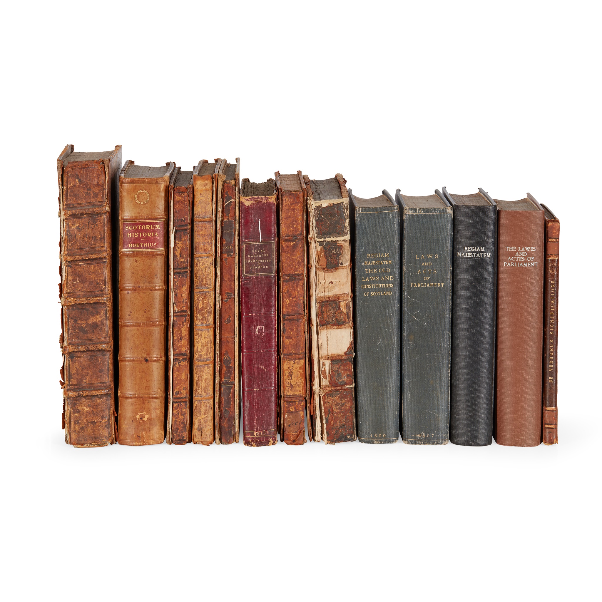 and 2 others (a fragment of The Lawes of Actes of Parliament, containing De verborum significatione only, 1599, worming; Thomas Thomson, editor, A Collection of Inventories and Other Records of the Royal Wardrobe and Jewlhouse; and of the Artillery and Munitioun [sic] in Some of the Royal Castles, Edinburgh: [privately printed], 1815, 4to, contemporary red quarter morocco, not collated)