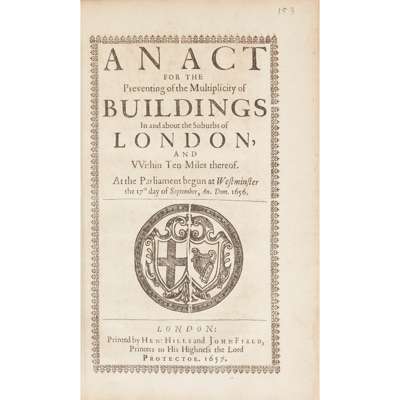 10) An Act for the Preventing of the Multiplicity of Buildings in and about the Suburbs of London, and within Ten Miles thereof. Retaining final blank G2 [R176090: 9 UK copies];