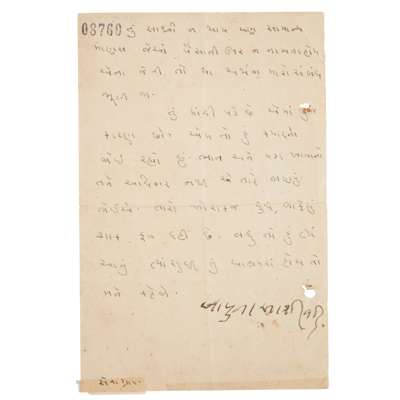 Letter dictated by Gandhi to an assistant, signed by Gandhi