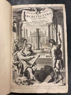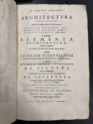 Note: A 'magnificent edition' of Vitruvius (Willems), containing extensive commentary and additional texts including the first edition in Latin of Henry Wotton's Elements of Architecture.