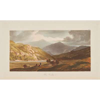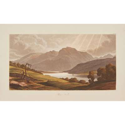 London: Longman, Hurst, Rees, Orme, and Brown, 1819. Large folio (53 x 36cm), 19th-century red crushed half morocco, titles and fleurons gilt to spine, triple fillet rules gilt to sides, top edge gilt, engraved folding map hand-coloured in outline, 41 hand-coloured aquatint plates by Henry Morton after Robson (each with protective guard), all text-leaves as called for, map offset, a few plates faintly offset through guards onto facing text-leaves, plate 34 (Ben-Na-Muich-Duidh) with very short repaired tear in fore margin not affecting image [Abbey Scenery 506]