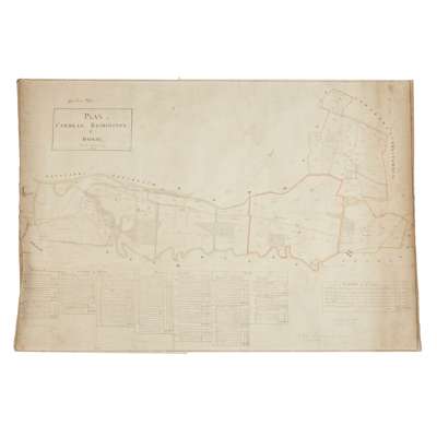Plan of Cardean, Bridieston & Baikie, Patrick Murray Esq., 1845, manuscript plan, 58 x 84cm, outline hand-colour, backed on linen, couple small tears extreme left (without loss), some light dust-soiling;