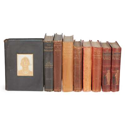 Johnston, Sir Harry. The Uganda Protectorate. London, 1902. First edition, 2 volumes, 4to, folding maps, plates, illustrations, original black pictorial cloth, t.e.g.; one endpaper loose, slightly rubbed;