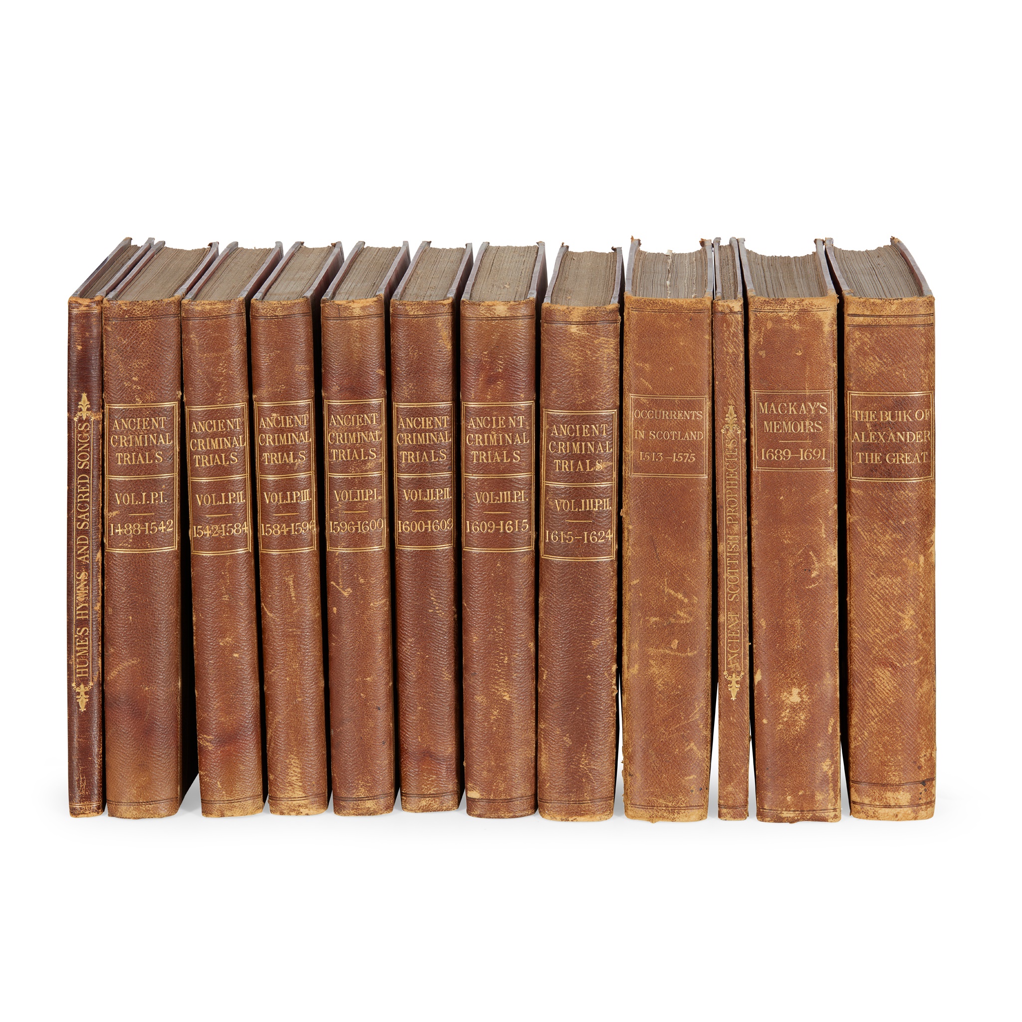 42) Ancient Criminal Trials in Scotland; compiled from the Original Records and MSS., with Historical Illustrations, etc. By Robert Pitcairn, 1833. 3 volumes in 7, one of 100 sets 'printed off on Club paper [and] purchased for the use of members. A few extra copies on Club paper were also printed, to supply members admitted to the Club after the time of publication' (Laing); the work was also published for general sale;