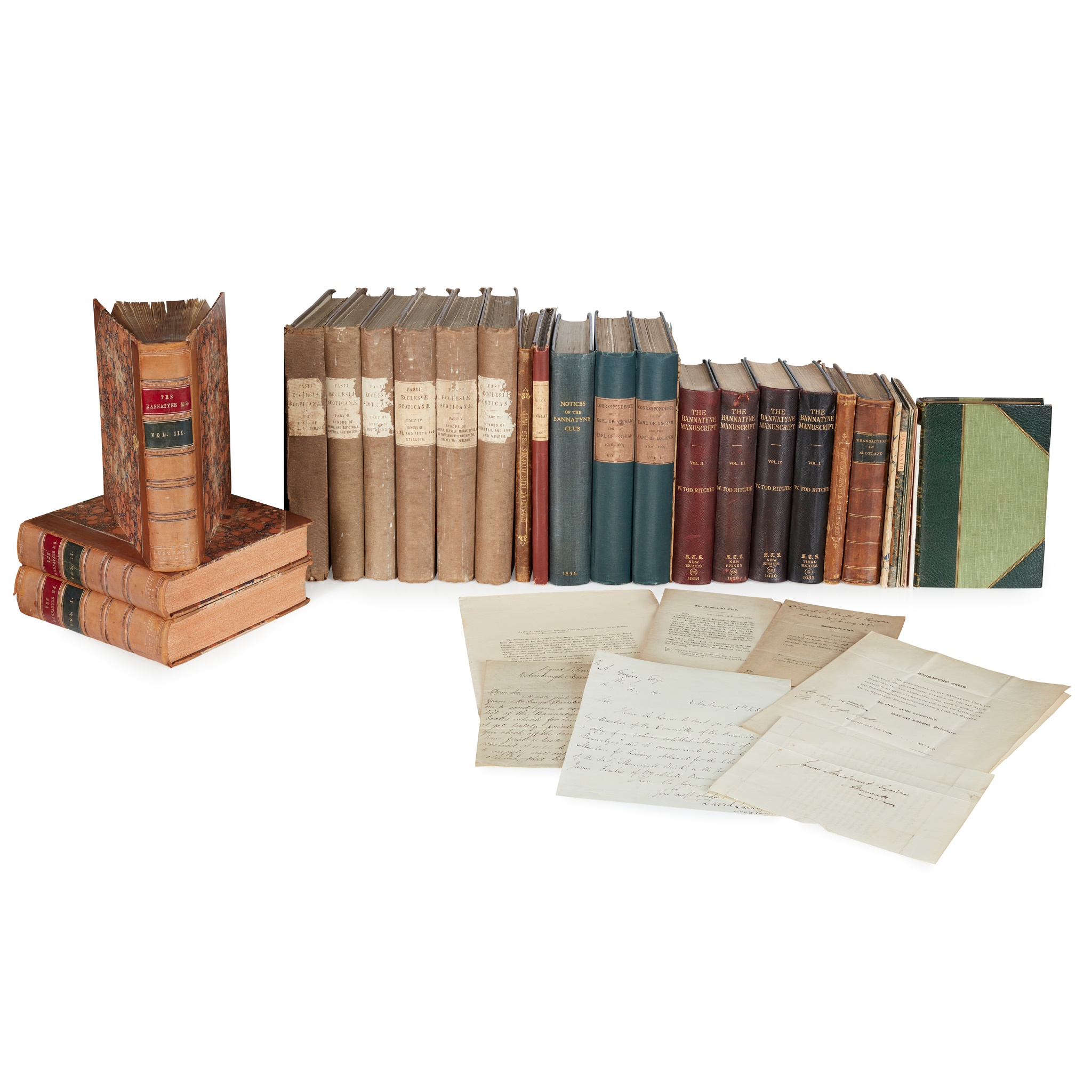 d) Folder of printed ephemera relating to the Bannatyne Club, including an autograph letter from Club secretary David Laing, dated 1830;