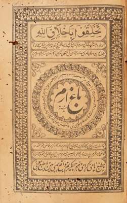 3) Jalal al-Din Rumi (1207-1273). Bagh-i Iram ['Garden of Iram', an Urdu translation from the Persian of selected works]. Mumbai: Matba' Fath Al-Karim, c.1880. 130 pp., worming, stitching split, held by one cord;