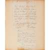 Complete autograph letters signed (all 1 p. unless otherwise stated) include: