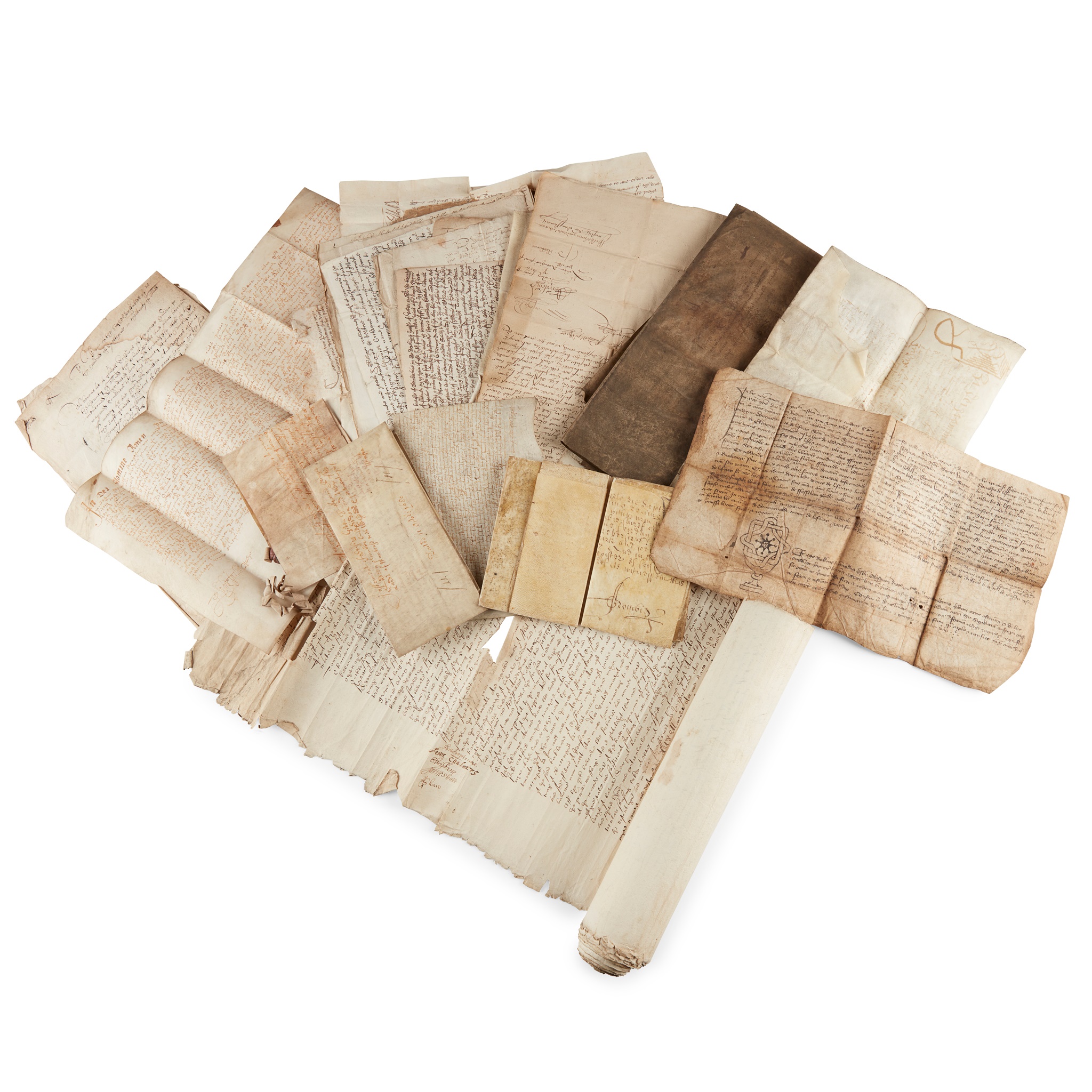 and approx. 40 others, on paper or vellum, including documents mentioning Patrick, Lord Gray of Forfar, 1575 (on paper), John Leslye of Boquhane, 1593 (on paper), the sheriffdom of Lanark, 1633 (on vellum), and similar