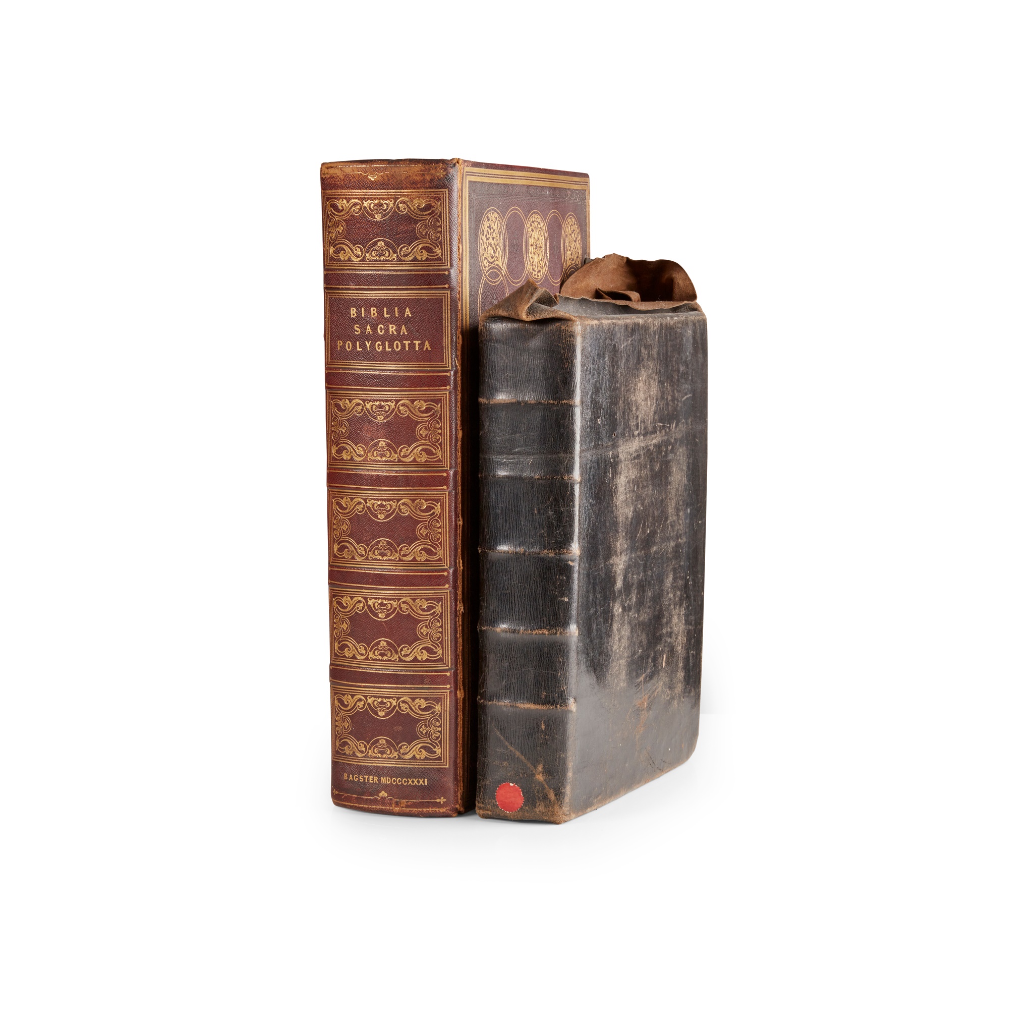 edited by Samuel Lee. London: S. Bagster, 1831. Large folio, text in Hebrew, Greek, Latin, English, German, French, Italian and Spanish, contemporary maroon morocco gilt, metal clasps, gilt edges, large morocco gilt presentation label to front endpaper "Presented to the Revd. John G. Lorimer, as a tribute of gratitude & esteem from the young ladies who have attended his Congregational Classes, Glasgow, 8th Feb. 1836", upper joint splitting;