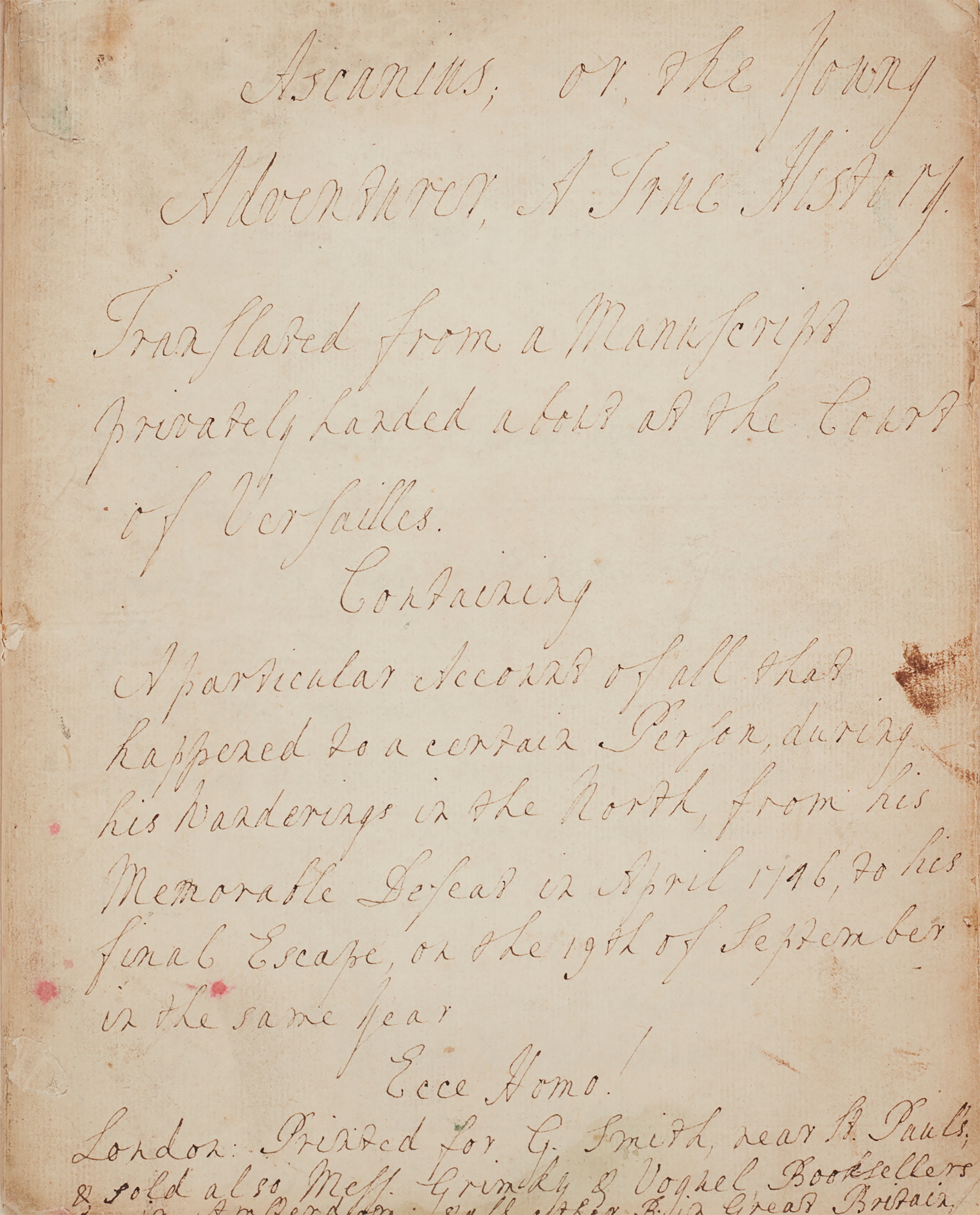 Manuscript copy after the edition: London: Printed for G. Smith, [n.d.] After 1746, 70 manuscript pp., in marbled paper wrappers, 20.5 x 16.5cm;