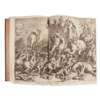 Translated into English. To which is prefixed a Discourse concerning the Roman Art of War. By William Duncan. Illustrated with Cuts. London: J. and R. Tonson and S. Draper, and R. Dodsley, 1753. Folio (43 x 26cm), civ 335 [20] pp., modern panelled calf to style, richly gilt spine, marbled endpapers, edges sprinkled red, 79 engraved plates including frontispiece (plates '3' and '4' in fact one plate), most double-page and 3 (nos. 41, 75 and 78) also folding, 6 folding maps, frontispiece offset onto title-page, title-page additionally somewhat marked, signatures 2A-2B with short closed tear to head, plate 41 (buffalo) with repairs and short closed tears along bottom edge, plate 59 (folding map of Italy) with small repair, plate 75 (elephant) with small tear to intersection of folds and short closed tear to foot [ESTC T136453]
