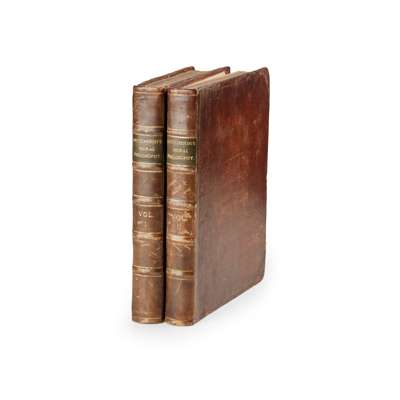 in three books. Published from the Original Manuscripts, by his Son Francis Hutcheson. To which is prefixed some Account of the Life, Writing, and Character of the Author, by William Leechman. Glasgow: printed and sold by R. and A. Foulis, 1755. First edition, 2 volumes, 4to (26.2 x 20cm), [12] xlviii 358, [4] 380, contemporary mottled calf, rebacked with corners restored and endpapers renewed, bindings scuffed, spotting to title-pages, volume 1 sigs. K and 2U-2X and volume 2 sigs. C and 3B, volume 1 front free endpaper partly detached and with two ownership inscriptions (probably 19th century), occasional ink underlining, custom slipcase [ESTC T99472; Gaskell 297; Goldsmiths' 8995]
