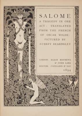 A Tragedy in One Act. Translated from the French of Oscar Wilde. Pictures by Aubrey Beardsley. London: Elkin Mathews, 1894. First edition in English and first illustrated by Beardsley, one of 500 copies, small 4to, original blue cloth, rebacked, 10 line-block plates including frontispiece, pictorial title-page, 16 pp. publisher's catalogue to rear, covers faded, wear and fraying to fore edges of covers, tips bumped, contents toned [Mason 350]. Together with: