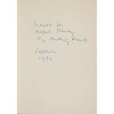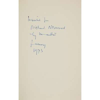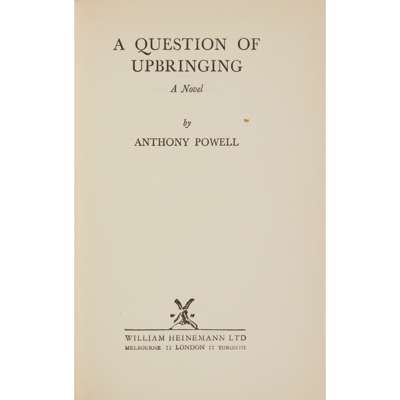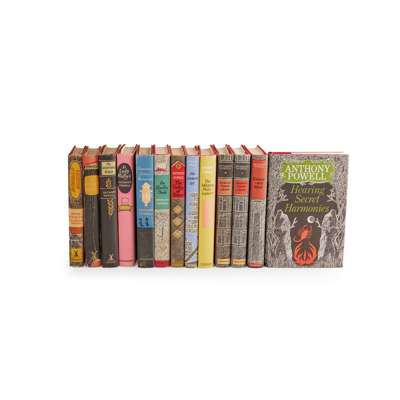 London: William Heinemann Ltd., 1951-1975. 13 volumes (including an additional volume of Books do Furnish a Room), first editions (one third impression), 2 volumes signed by Powell, all with dust-jackets, the set comprising: A Question of Upbringing, 1951, dust-jacket slightly toned and edge-worn, with Book Society Recommendation label; A Buyer's Market, 1952, third impression, some tears and chips to dust-jacket, dust-jacket lacking head of spine; The Acceptance World, 1955, dust-jacket slightly bumped; At Lady Molly's, 1957, a little rubbing and edge-wear to dust-jacket; Casanova's Chinese Restaurant, 1960, slight dust-soiling to dust-jacket; The Kindly Ones, 1962, signed by Anthony Powell to title-page, inscribed to Alfred Manley(?) on the front-free endpaper; The Valley of Bones, 1964; The Soldier's Art, 1966, dust-jacket price-clipped; The Military Philosophers, 1968, signed by Anthony Powell to title-page, inscribed to Michael Norwood on the front-free endpaper; Books do Furnish a Room, 1971; another copy, 1971; Temporary Kings, 1973; Hearing Secret Harmonies, 1975