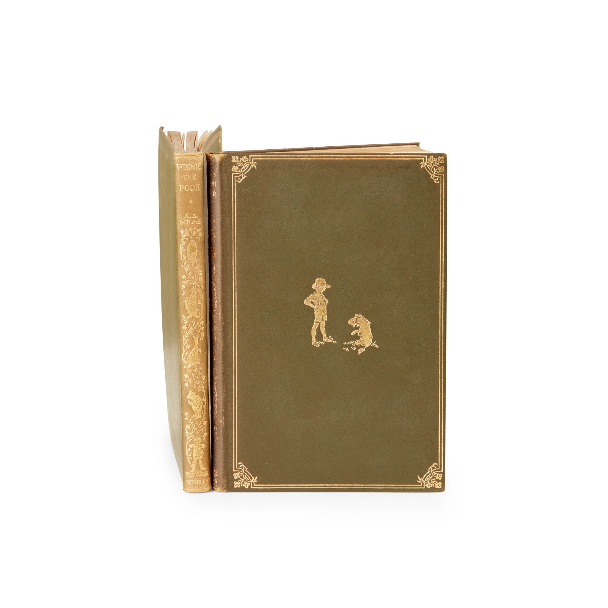 London: Methuen and Co. Ltd., 1926-8. First editions, first impressions, deluxe issues, 8vo, original green leather over flexible boards, pictorial decoration to spines and front covers in gilt, all edges gilt, endpapers and illustrations in the text by E. H. Shepard, light rubbing to spines at head and foot, Winnie-the-Pooh spine slightly sunned