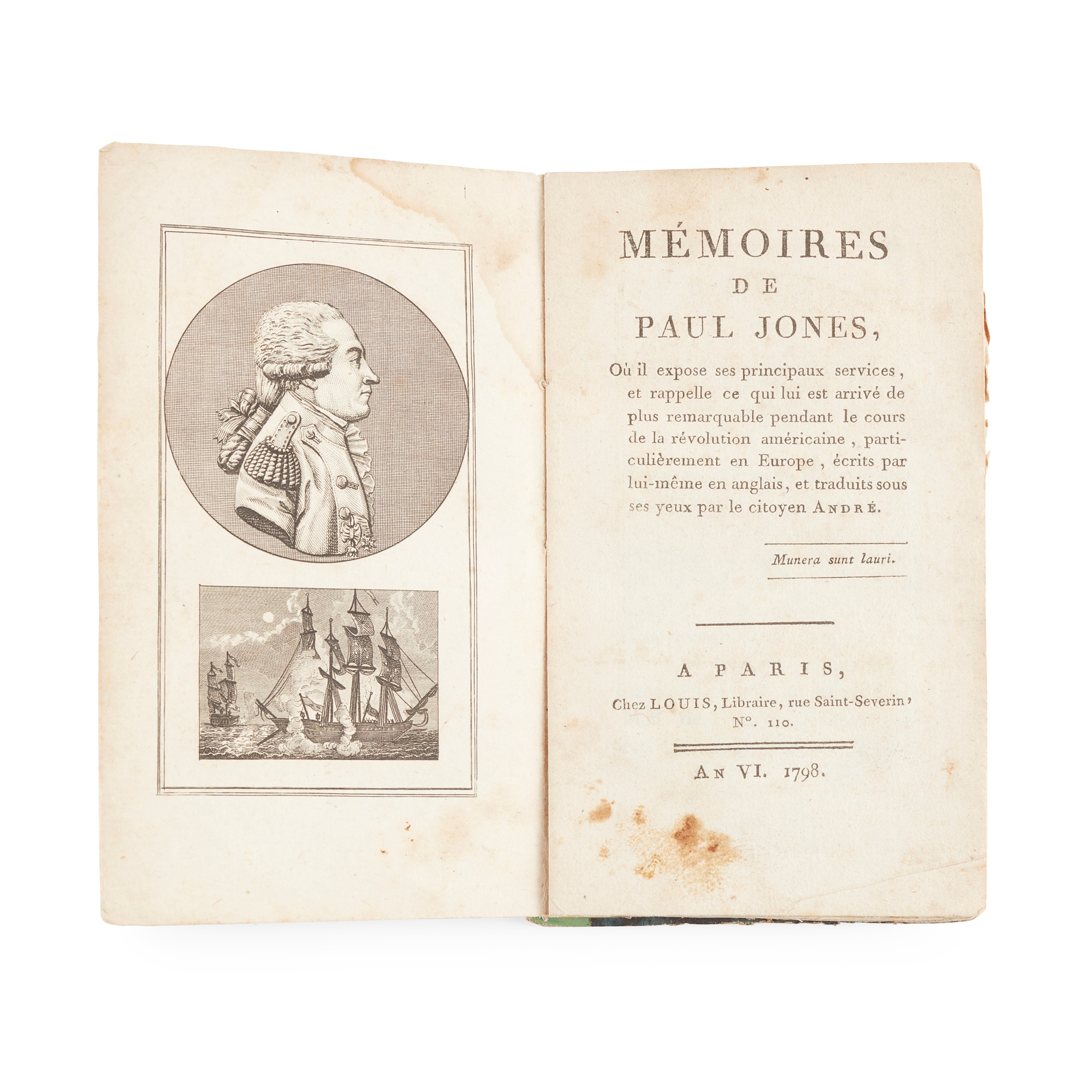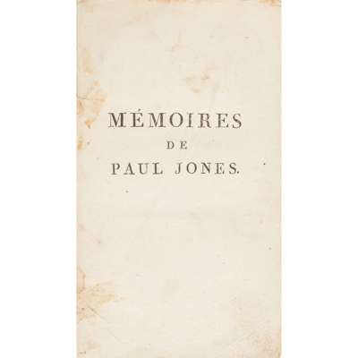 Où il expose ses principaux services, et rappelle ce qui lui est arrivé de plus remarquable pendant le cours de la révolution américaine, particulièrement en Europe, écrits par lui-même en anglais, et traduits sous ses yeux par le citoyen André. Paris: Chez Louis, Libraire, rue Saint-Severin, 1798. First edition, 12mo (14.4 x 8.3cm) original blue boards, half-title, engraved frontispiece, ink inscription to front pastedown, tear to half-title, stain upper-right of frontispiece (not affecting illustration), intermittent foxing throughout, lower corners of N7-8 missing, boards rubbed, upper board detached, loss to spine