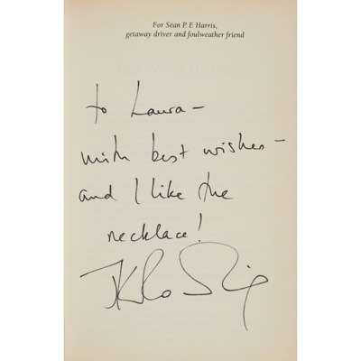 Provenance: Inscribed for the vendor at a book signing in Edinburgh c.1998; according to her recollection the necklace was made of candy.