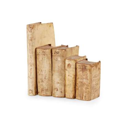 Guicciardini, Francesco & Francesco Sansovino. La Historia D'Italia. Geneva: Jacob Stoer, 1621. 2 volumes, 8vo, contemporary vellum, yapp edges, 'Wakefield' in rubbed gilt to upper covers [USTC 6702333];