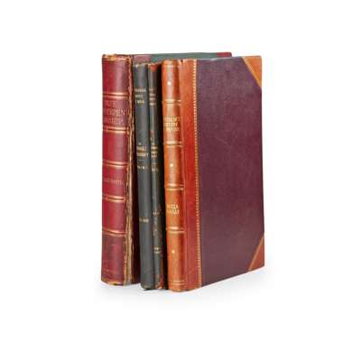 Kaye, G. R (editor). The Bakhshali Manuscript. A Study in Medieval Mathematics. Calcutta: Government of India Central Publication Branch [volume 2, Delhi: Manager of Publications], 1927-33. First edition, 2 volumes, 4to, original blue quarter morocco, photogravure plate (spotted), 47 ?collotype plates, volume 2 spine rubbed