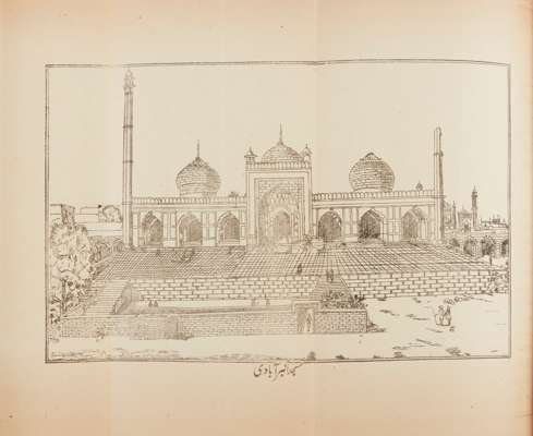 Note: First edition thus, one of 1,000 copies, no other copies traced in auction records. The work is largely an Urdu translation of the Archaeological Survey of India’s List of Muhammadan and Hindu Monuments in Delhi Zail (1915-1922), the standard work on the subject, but provides additional maps and information on local traditions. Bashir-ud-Din Ahmad is described on the title-pages as 'first talukdar (collector and district magistrate) ret[ired], H. E. H. the Nizam's government, author of the histories of Vijayanagar and Bijapur, Iqbal Dulhan, Husn-e-Muashrat, Islah-e-Maishat, etc., etc., and translator of Dr. Stall's Self and Sex series'.