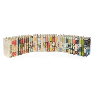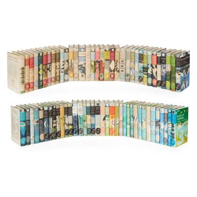 London: Collins, 1945-83. 70 volumes (i.e. containing both editions of 6, Highlands and Islands), 8vo, original cloth, dust jackets, a few volumes with ornithological bookplate of I. D. Pennie, early volumes with occasional customary fading to cloth and variable spotting to endpapers and jackets (chiefly to flaps), volumes 27-9, 38, 52, 63, 64, 65 and 67 jacket spines faded, 13 jacket with water-stains to spine-panel, a few small nicks and chips elsewhere