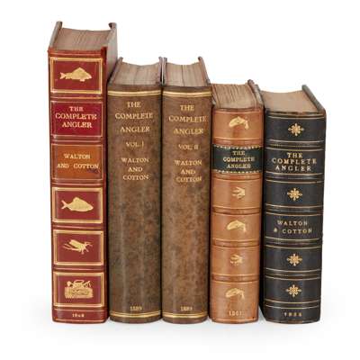 1) London: Samuel Bagster, 1808. Large 8vo (22.6 x 13cm), contemporary straight-grain calf, rebacked with spine containing gilt angling motifs to compartments, half-title with woodcut vignette, 17 engraved plates including portrait frontispiece, extra-illustrated with 17 hand-coloured engraved proof plates of the vignettes of fish printed in the text [Westwood & Satchell p. 224];