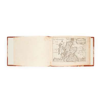 [London, c.1650]. Oblong 12mo (10.3 x 15.3cm), modern half calf, 12 engraved maps with text on versos, comprising: 1) The Kingdome of Scotland; 2) The South p[ar]t of Scotland wherin are contayned Edinbrough, St Andrew and Glasco; 3) The Southern parte of Scotland, wherin is ye strange Lake Lomund; 4) The Eastern Part of Scotland wherin ther are divers Shires and the University of Aberdyn; 5) Part of Scotland it is called of the inhabitance Stranaverne with his borderers; 6) The Isles of Hebrides wth ther borderers; 7) Cathanes and Orknay Ins[ulae]; 8) The Kingdome of Irland; 9) Mounster; 10) Linster; 11) Connack; 12) Ulster. Light bronwing, very shallow chip to top edges, 'The South p[ar]t of Scotland with minor loss to lower fore corner, a few marks.