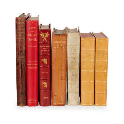 Laking, Guy Francis. The Armour of Windsor Castle. European Section. London: Bradbury, Agnew & Company, 1904. First edition, 4to, original quarter pigskin, top edge gilt, others untrimmed, 40 mounted photographic plates with tissue-guards, binding slightly rubbed and marked;