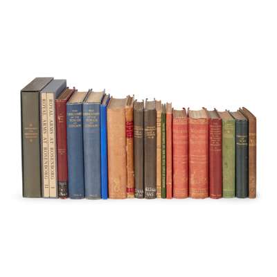 Brett, Edwin J. Catalogue of the Important Collection of Armour and Arms, many of which have been exhibited at the Tudor, Armada & Vietnam exhibitions... London; Messrs. Christie, Manson and Woods, Monday March 18th -26th, 1895. 8vo, marked up by Alfred Nielson and inscribed to his friend in August 1895, with two additional bookplates, original paper-covered boards, joints split;