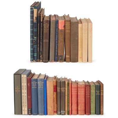 North, C.N. McIntyre. The Book of the Club of the True Highlanders / Leabhar Comunn nam Fion Ghael. London: Richard Smythson, [1881]. 2 volumes, folio, 70 plates, North's signature in purple pencil to the introduction to the reader original cloth gilt in Graham and Farquharson tartans, bindings worn with some cloth torn, pages loose;