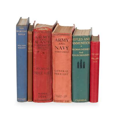 and 11 others (these not collated), including: War Office, Textbook for Small Arms, 1908 and 1929 (i.e. 2 works, 8vo and 4to, original red cloth, the former ex-library); Robin Chute, Shooting Flying, A Bibliography of Shooting Books 1598-1950, 2001, first edition, one of 500 copies signed by the author, folio); Walter Winans, The Art of Revolver Shooting ... New Edition, Revised and Enlarged, 1911 (4to, original cloth); G. T. Teasdale-Buckell, Experts on Guns and Shooting, 1900, first edition, secondary binding, large 8vo, original cloth); and similar