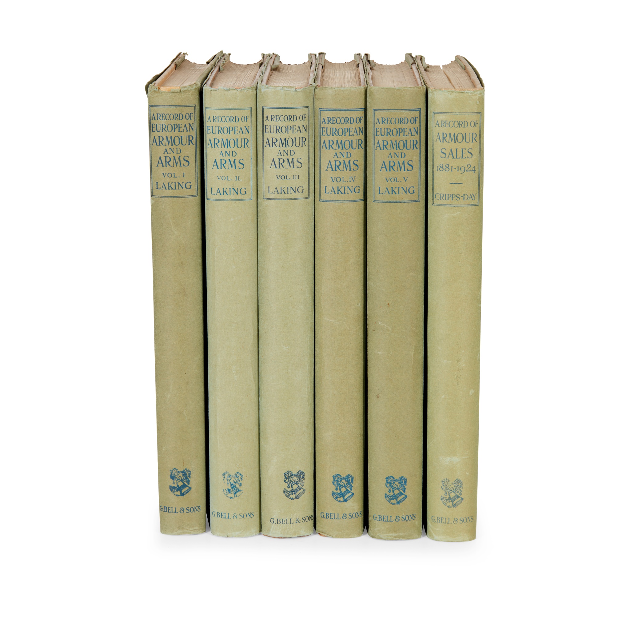 London: G. Bell and Sons, Ltd., 1920-22. First edition, 5 volumes, 4to, original beige cloth with red morocco spine-labels, top edges gilt, others untrimmed, halftone photographic illustrations throughout the text, photogravure frontispiece to volumes 1 and 2, each volume with the dust jacket, volume 1 dust jacket with tear to head of rear panel, volumes 2-5 covers mottled. [Together with the supplementary volume:] A Record of Armour Sales 1881-1924 by Francis Henry Cripps-Day, London: G. Bell and Sons, Ltd., 1925, 4to, original cloth, dust jacket, frontispiece, illustrations throughout