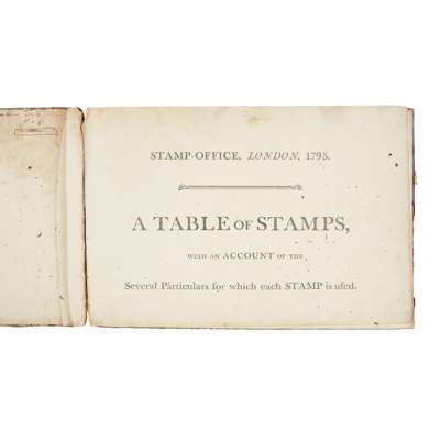 London: Stamp-Office, 1795. Oblong folio, contemporary half calf with red morocco gilt label to upper cover, comprising 10 leaves (title and 9 numbered leaves), possibly lacking two initial (blank?) leaves, no records traced on the ESTC [ESTC N43331 lists what appears to be an earlier edition from 1791], covers rubbed, various notes in early hand to endpapers including an illegible gift inscription