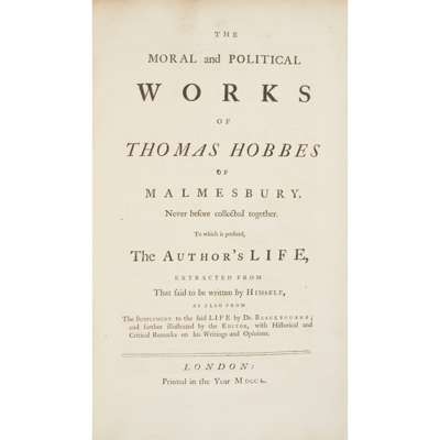 London, 1750. Folio, portrait, additional engraved 'title page' for Leviathan, contemporary calf with red morocco gilt label to spine, 7Y (i.e. pp.633-636) and a few prelims misbound but present, occasional slight soiling, joints cracked, rubbed [ESTC T112688]