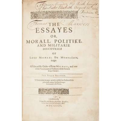 Note: John Florio's translation of Montaigne's essays, the first into English, was originally published in 1603. It was 'one of the great translations of the Elizabethan age ... [and] a source of inspiration for such as Ben Jonson, Sir Walter Raleigh, John Webster, and Shakespeare' (ODNB).