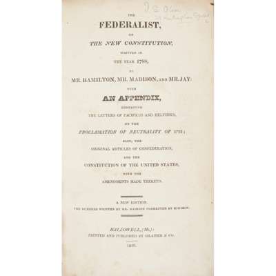 Hallowell, (Me.): Glazier & Co., 1826. 'A New Edition', 8vo, contemporary half morocco, upper board detached, lower joint split, a little internal discolouration