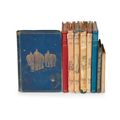 London: Macmillan and Co., 1894. First edition, first impression, 8vo, original blue pictorial cloth, gilt edges, frontispiece and text-illustrations, binding rubbed and marked, slightly shaken, lacking pp. 153-6, pp. 149-52 loose, occasional finger-soiling, marginal tear to pp. 133/4 old manuscript note tipped to front free endpaper, contemporary ownership inscription to initial blank. Together with 8 others including A. A. Milne, The House at Pooh Corner (first edition, 1928, original cloth, dust jacket), Winnie-the-Pooh, (second edition, 1926, original cloth, dust jacket, Now We Are Six (2 copies, second and third editions, both 1927, original cloth, third edition with dust jacket), When We Were Very Young (2 copies, thirteenth and sixteenth editions, 1926-7, original cloth, sixteenth edition with dust jacket)