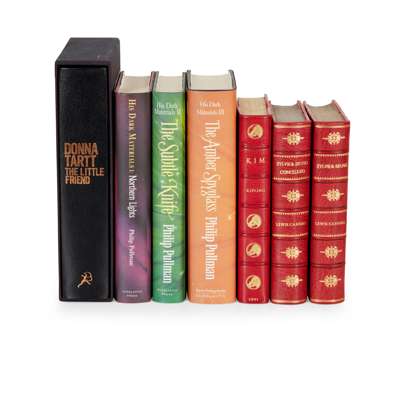 The Northern Lights; The Subtle Knife; The Amber Spyglass. London: Scholastic, 1995, 1998, 2000. First edition, first impression of Amber Spyglass, ninth impression of Northern Lights, seventh impression of Subtle Knife, 3 works, 8vo, original boards, dust jackets, signed by Pullman on the title-page of each volume;