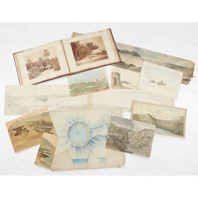 together with an oblong folio photograph album containing 28 albumen print photographs, c.1880, 20 x 27cm, mainly studio photographs of Algiers and environs, and ethnographic 'types', also naval interest (HMS Victory, Golden Jubilee review at Spithead, 1887), 2 group portraits of a Scottish army regiment, etc.
