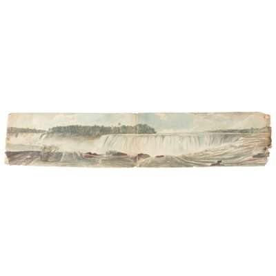 Panorama probably of Niagara Falls, watercolour, on 2 sheets, backed on linen, 21 x 105cm, some chipping to extremities;