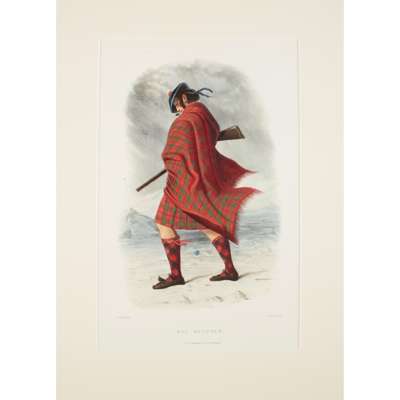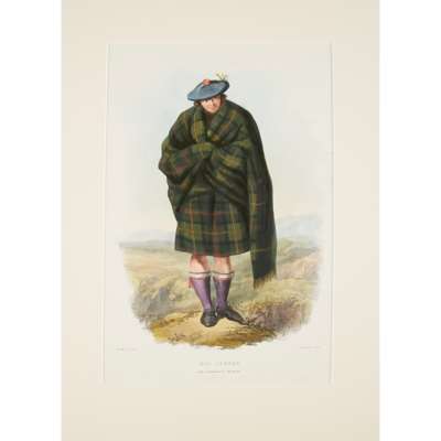 London: Ackermann & Co., [1845-7, or Willis and Sotheran, 1857]. 37 hand-coloured lithographs after R. R. McIan by L. Dickinson and others, approx. 36 x 26cm, on thick wove paper, heightened in gum arabic, all tipped along top edges into card window-mounts, most plates with sewing-holes along right-hand edges (concealed by mounts), several with imprints shaved, a couple (e.g. Mac Gregor) with small paint-splashes (presumably printing-shop accidents), a few (e.g. Mac Intosh, Clanranald, Macdonald of Glenco) spotted. Plates comprise: Macdonnel of Glengarry; Macgillivray; Menzies; Colquhoun; Cumin; Clan Donchadh, of Mar; Shaw; Mac Aulay; Mac Nab; Mac Coll; Campbell of Argyle; Mac Rae; Mac Donald of Keppach; Mac Nicol; Mac Intyre; Mac Nachtan; Macalister; Graham; Mac Laurin; Mac Millan; Mac Phee; Mac Lennan; Ferguson; Urquhart; Macduff; Macdonald of the Isles; Mac Innes; Mac Dugal; MacGregor; Stewart; Mac Intosh; Davidson; Mac Ivor; Clanranald; Munro; Grant; Macdonald of Glenco [Abbey Life 426]