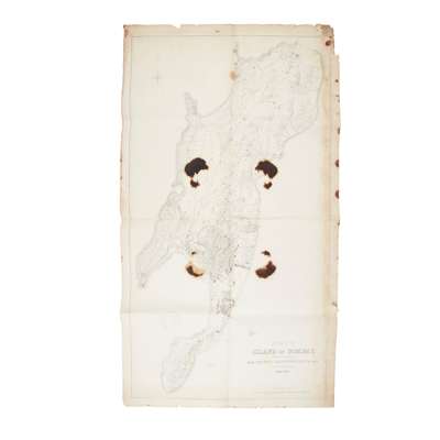 constructed on reductions from Colonel Laughton's Map of 1872, with alterations up to July 1874. Poona: 1875, folded linen-backed map, 137 x 78cm, some chipping to edges, significant staining to map [RARE: no copies traced at auction];